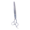 Las hojas de esta tijera, elaboradas con acero inoxidable de grado profesional, presentan un afilado impecable que permite cortes precisos y uniformes en todo tipo de pelajes caninos. Desde pelajes finos y suaves hasta los más densos y rizados, esta tijera se adapta con maestría a las necesidades de cada raza y tipo de pelo.